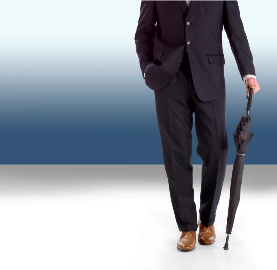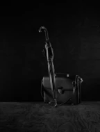 Charles Dickens® automatic umbrella, walking stick, 8 panels, fibreglass shaft and ribs, genuine leather handle, push button closing, includes carrying sleeve