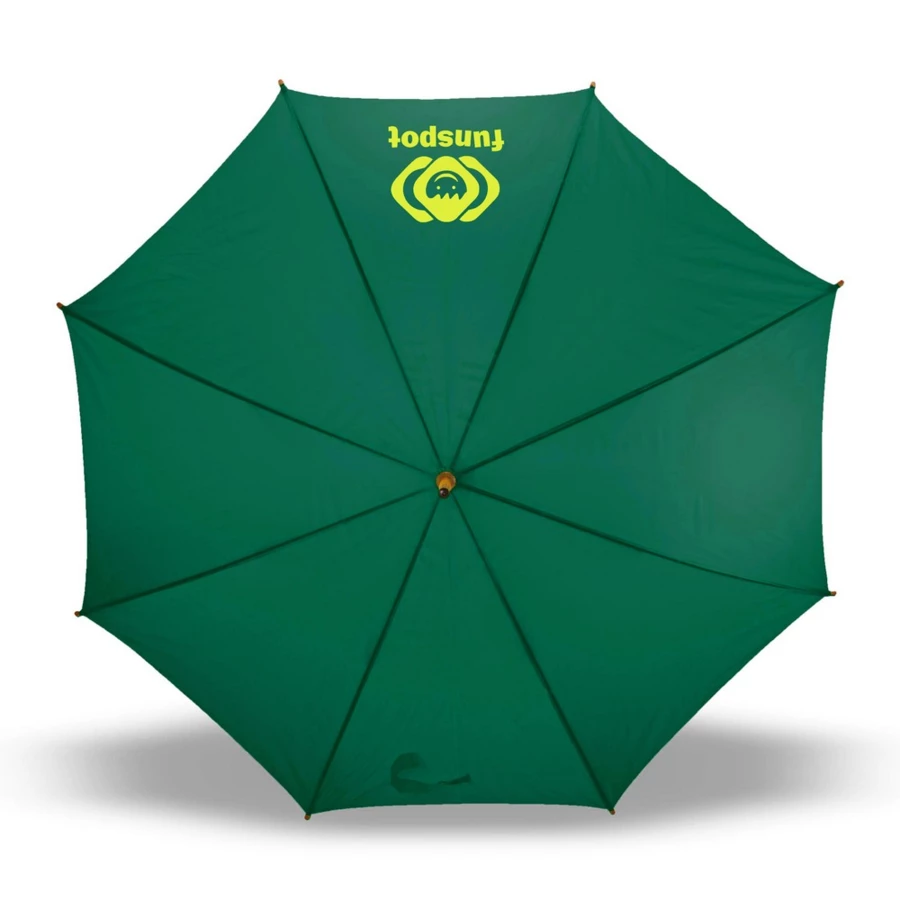Automatic umbrella 23", features 8 panels and hook and loop closing, wooden shaft and handle, product made from polyester 190T
