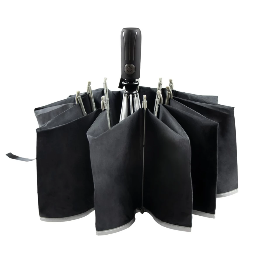 Mauro Conti automatic umbrella, foldable, 10 panels, glossy panel edges (for promotional use only), hook and loop closing, pouch included