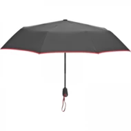 Pocket umbrella with a coloured border - made out of 190T pongee and fibreglass. We will print your logo onto one segment. Multi colour print on request.