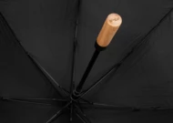 Automatic umbrella made of RPET material, with a fiberglass frame and acacia handle.