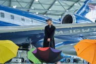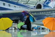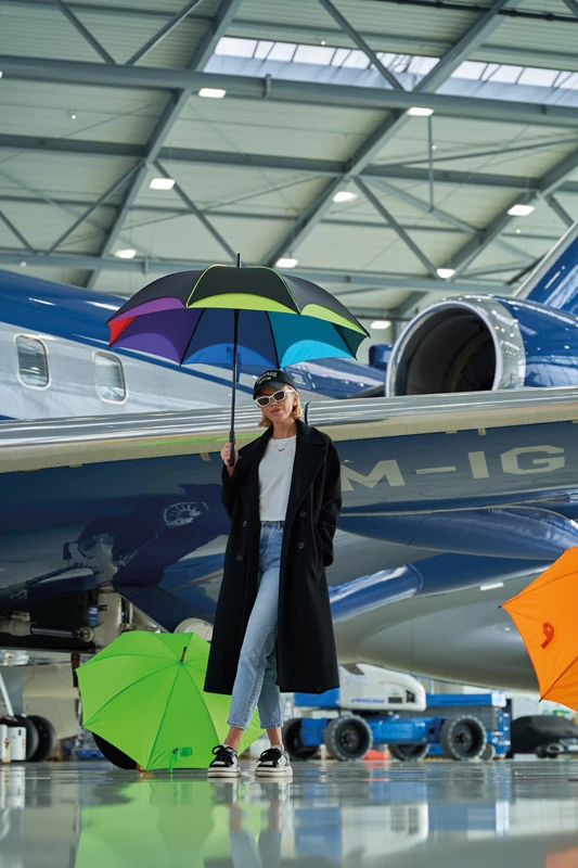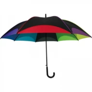 XXL automatic umbrella in rainbow colors, made of polyester with plastic handle, plastic tips and black poles. We will print your logo on one segment.