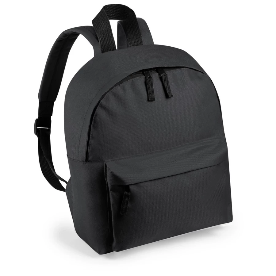 Leisure backpack for kids in resistant polyester 600D material, available in a wide range of vid colors. With double puller zipper pocket and front pocket. Reinforced corners and accessories in black color. With padded back and adjustable, padded, shoulder straps.