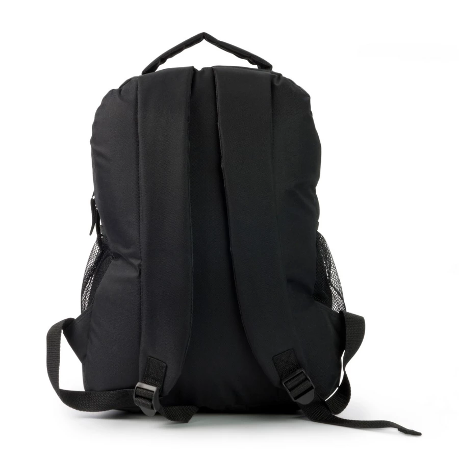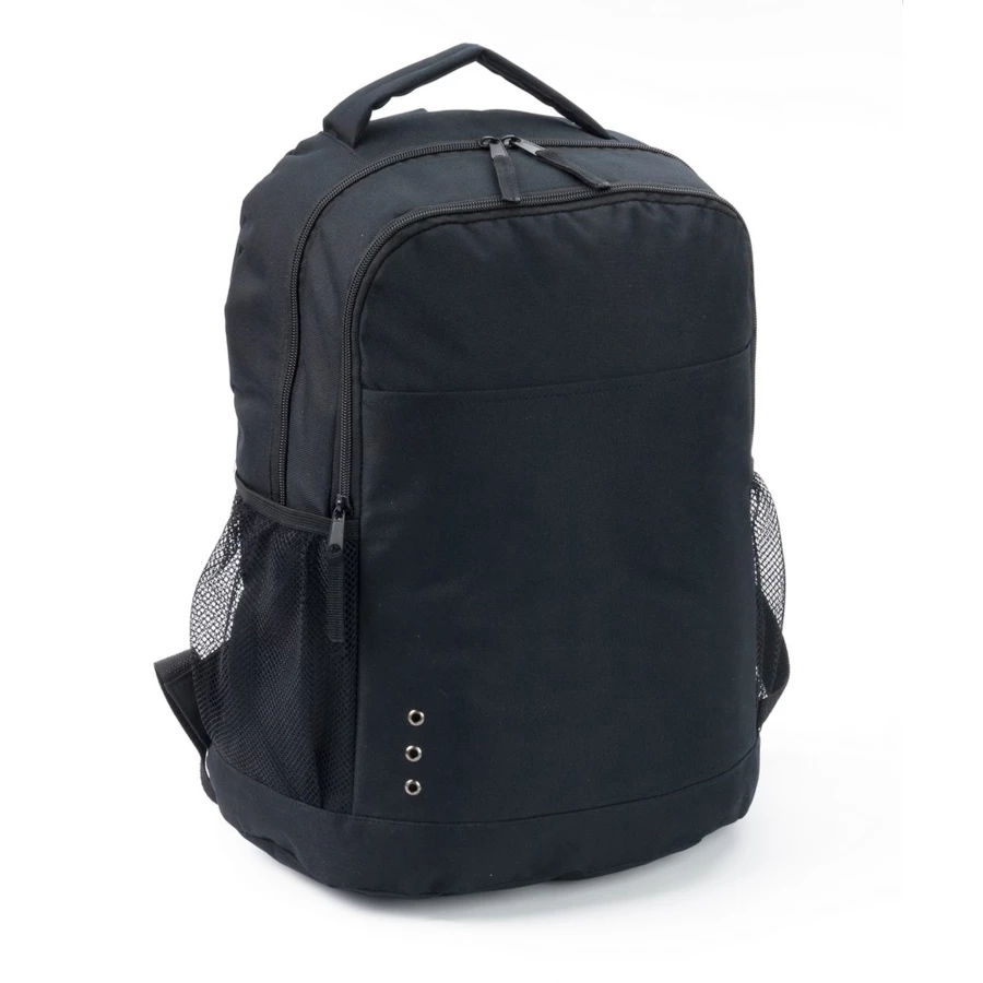 Backpack with zipped main compartment and front pocket, two mesh side pockets