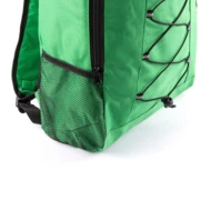 Backpack made of durable 600D polyester. Practical middle pocket with zip closure and headphone outlet, with handy side pockets and elastic string at the front in matching color with the zip. Comfortable and adjustable shoulder straps, padded like the backside. Available in varied and bold colors.