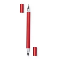 Eternal pencil and ball pen 2 in 1. Hooded closure, with ball pen in one end (jumbo cartridge and blue ink), and eternal pencil on the opposite end, so the same pencil is used every time and no waste is generated. Durable ABS body with metal finish. Available in a wide range of colours.