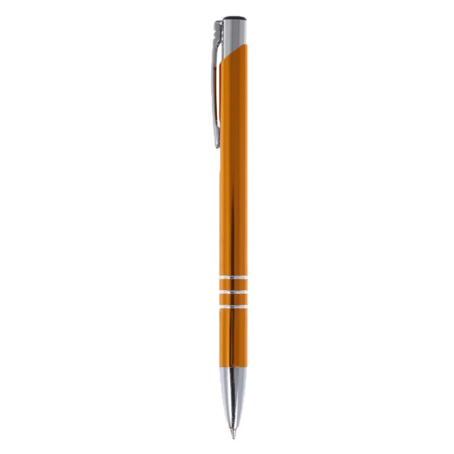 Ball pen, coloured barrel with shiny finish, features trim parts in silver colour, writes in blue, product made from aluminium