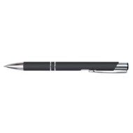 Ball pen with rubber finishing and silver elements, mirror surface after engraving