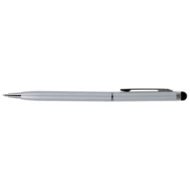 Ball pen, coloured barrel and details in silver colour, small diameter gives a modern look, stylus tip enables touch screen operation, writes in blue, product made from aluminium