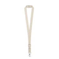100% cotton lanyard with metal carabiner. Removable buckle and safety lock in wheat straw. Made in Europe. 20 x 510 mm