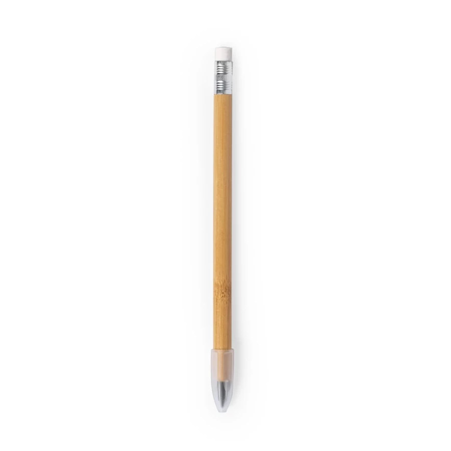Everlasting pencil made of bamboo. Reusable and with infinite writing, so the same pencil is always used and no waste is generated. Including eraser on the top of the pencil.Materials such as bamboo encourage the use of natural raw materials and reduce pollutant emissions. In addition, bamboo comes from a highly resistant and versatile plant, with fast growth and regeneration, making it an excellent alternative to the use of traditional wood.