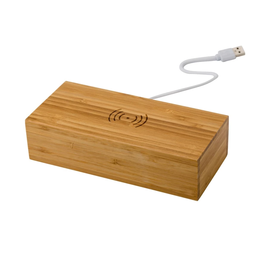 Bamboo wireless charger 5W, integrated LED clock display, works with devices with inductive charging function, micro USB port, cable included
