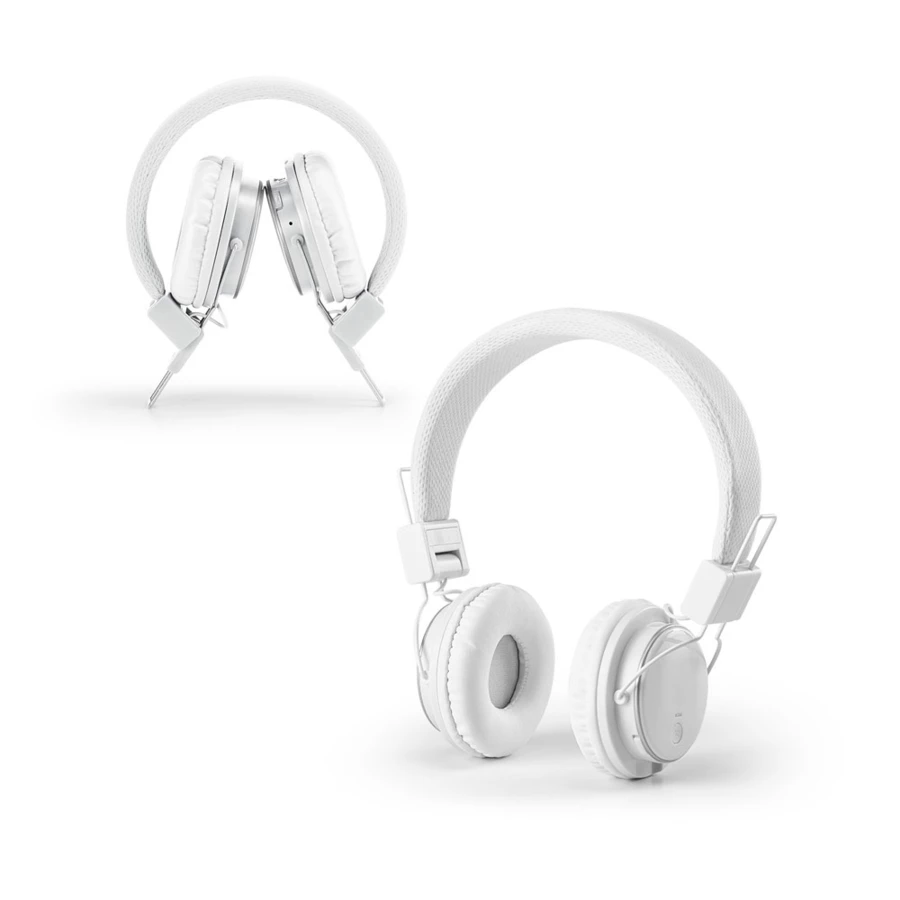 Foldable and adjustable ABS headphones with padded ear cups for comfort. Features BT transmission and TF card reader. The headphones have autonomy up to 4 hours and the following functions: call answering, volume control and easy mobile device playlist and FM radio connection. They include a USB cable for charging and are supplied in a gift box. Folded: 165 x 135 x 70 mm | Box: 150 x 150 x 70 mm