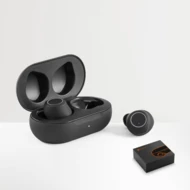 True wireless headphones that are practical and easy to take everywhere. It has BT 5'0 transmission and a 300 mAh battery with approximately 6 hours of autonomy. Includes USB/USB-C cable for charging. Supplied in a black gift box. 68 x 39 x 28 mm