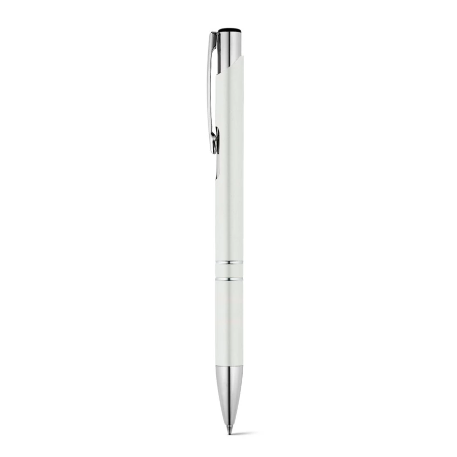 Aluminium ball pen with clip and metallic finish. Available in various colours. Black ink. ø10 x 137 mm