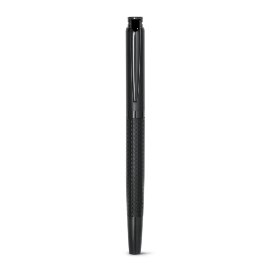 Metal rollerball pen with relief on the barrel. Supplied in padded gift box. Black ink. ø11 x 137 mm | Case: 179 x 55 x 30 mm