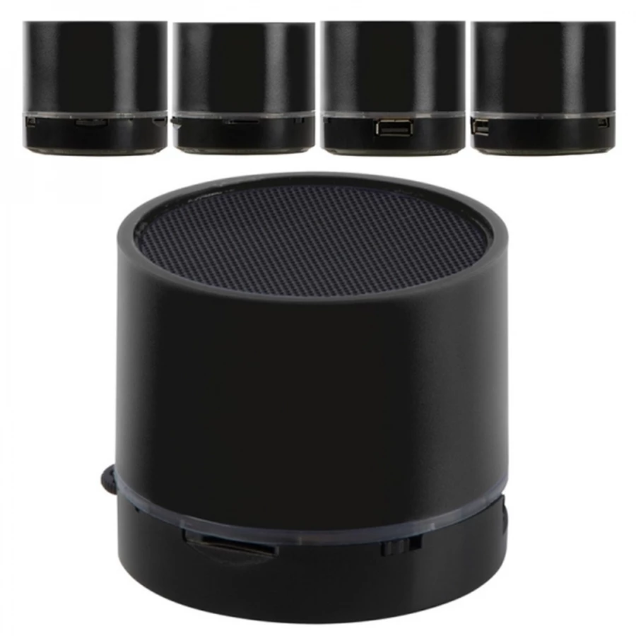 Trendy Bluetooth speaker including USB charging cable and a battery life of 30 - 60 minutes. Additional features: Top and bottom light effects, Micro SD card slot, Micro USB and USB port. We print your logo on the case.