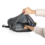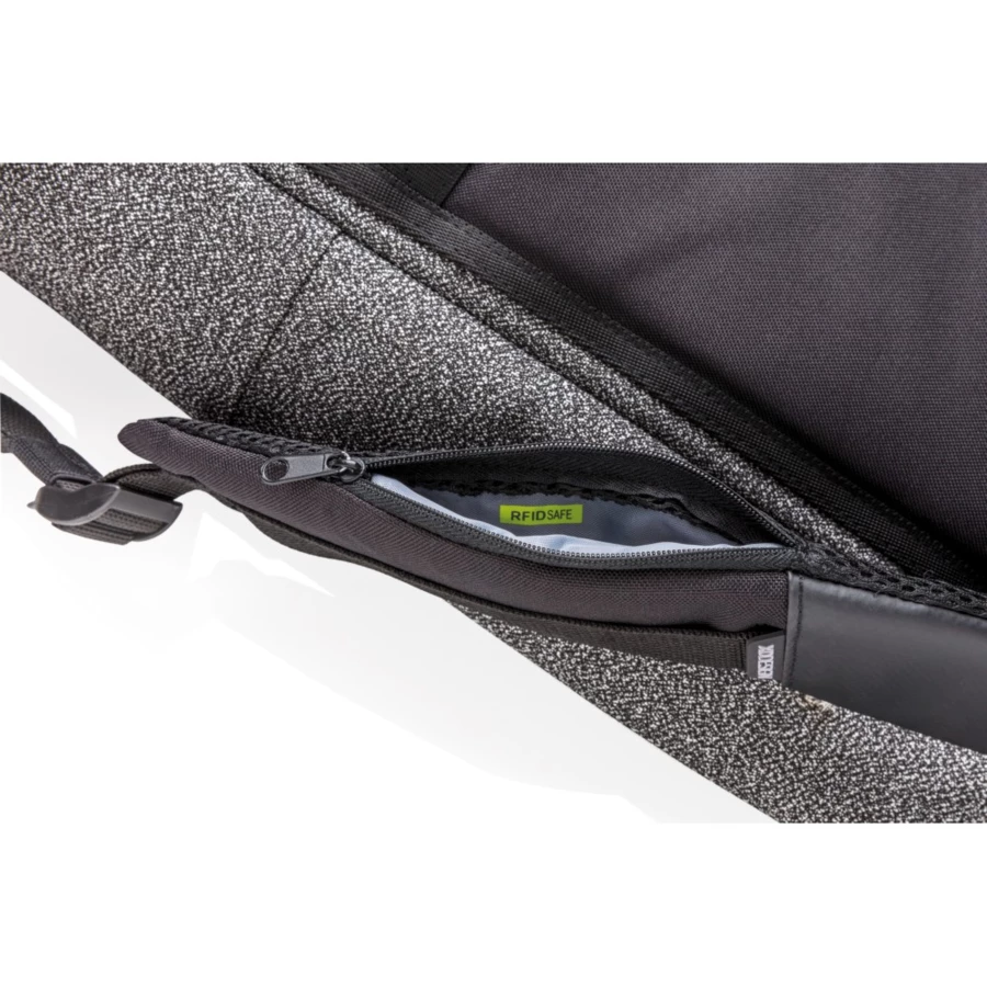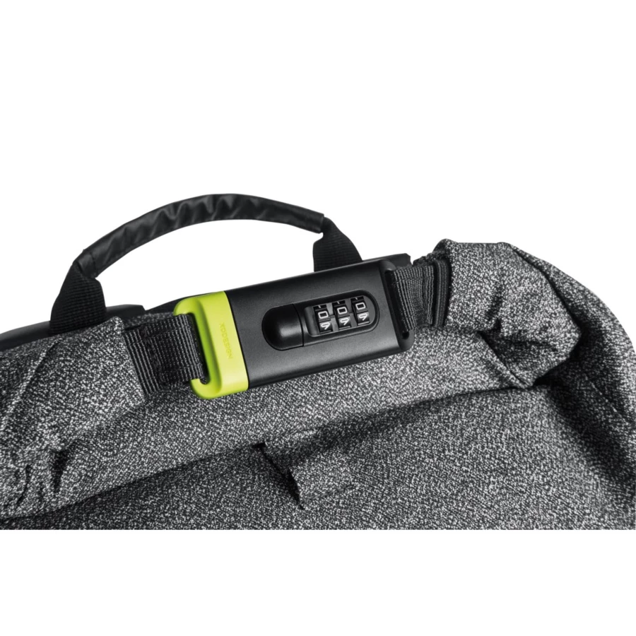 The Bobby Urban anti-theft cut-proof backpack is your safest travel companion yet. It’s made of high quality anti-cut fabric and the main compartment can be completely locked with the steel reinforced combination lock. This function can also be used to lock the bag around a fixed object. There are hidden pockets on the backside and in the shoulder strap for cards, with RFID protection. The bag comes with a side water bottle pocket and detachable elastic net for your sports equipment. While on the inside there are padded compartments for a 15.6” laptop, tablet up to 12.9” and mesh pockets for your other belongings. Registered design®