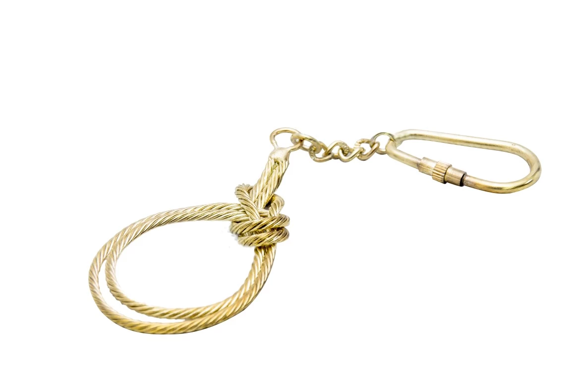 Breloczek mosiężny - węzeł podwójny. Dł. 4cm. Dł. całego breloczka - ok. 10cm. Odkręcany zaczep umożliwia łatwe umieszczenie kluczy w breloczku.