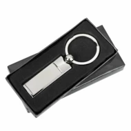Brelok na klucze powstały z połączenia matowego metalu z błyszczącym. Doskonale nadaje się na akcje promocyjne. Pakowany w czarne kartonowe opakowanie upominkowe.