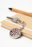 Bottle cap shaped metal keyring with bottle opener. In black gift box. Ideal for epoxy dome printing.