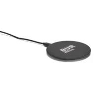 Wireless charger with fast charging in a circular shape. It features a backlight at the bottom for a modern design.Material: ABS with rubberized finishWireless charging power: 10 WInput: microUSB (15W)Includes: USB-A/microUSB cableSupply: gift boxDimensions: ø99 x 9 mm | Cable: 1000 mm