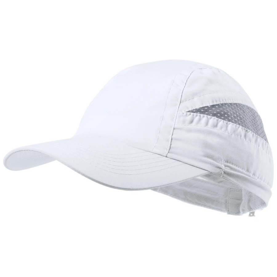 7 panel sports cap in soft microfiber of bicolored design in vivid colors. Elastic closure with fitting accessory and mesh panels for sweat.