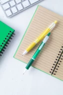 Plastic ballpoint pen with rubber grip. With blue refill.