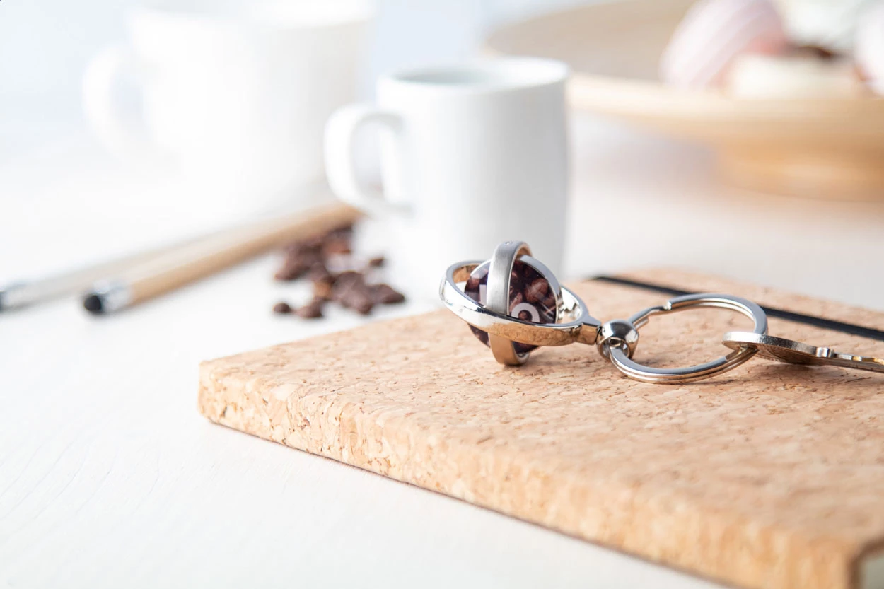 Keyring with turnable inner area, in black gift box.