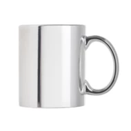 350ml ceramic mug. Available in eye catching colors silver and golden. Especially designed for laser engraving, including a special metallic coating for your logo to be properly engraved in white color, matching with the inside color of the mug. Presented in an individual box. Use in microwave ovens is not recommended due to the metallic outer coating.