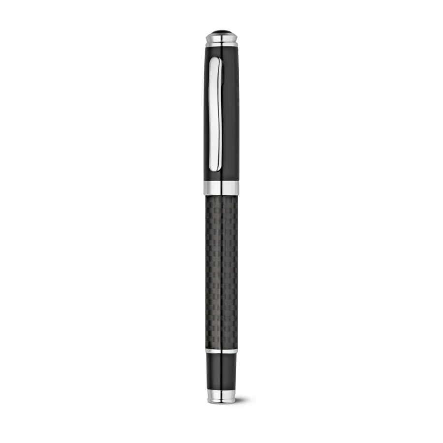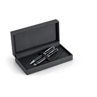 Set with metal and carbon fibre rollerball and ball pen, both with a clip. Both pens come with black ink and the ballpoint pen has a twist mechanism. Supplied in a cushioned PU case. Ball pen: ø13 x 142 mm | Roller: ø13 x 140 mm | Case: 171 x 67 x 38 mm