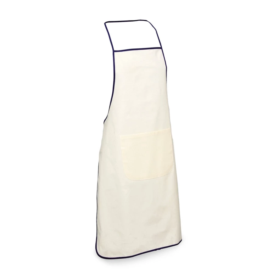 100% cotton apron (105 g/m²) with soft fabric, natural colour with coloured trim. Apron with 1 front pocket and adjustable straps. 600 x 900 mm | Pocket: 250 x 200 mm