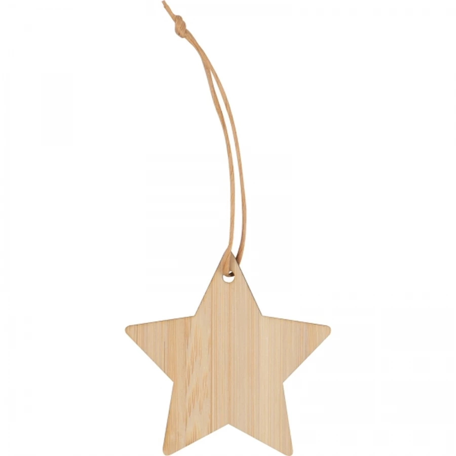 Star-shaped Christmas or decorative pendant made of bamboo with a hanging loop.
