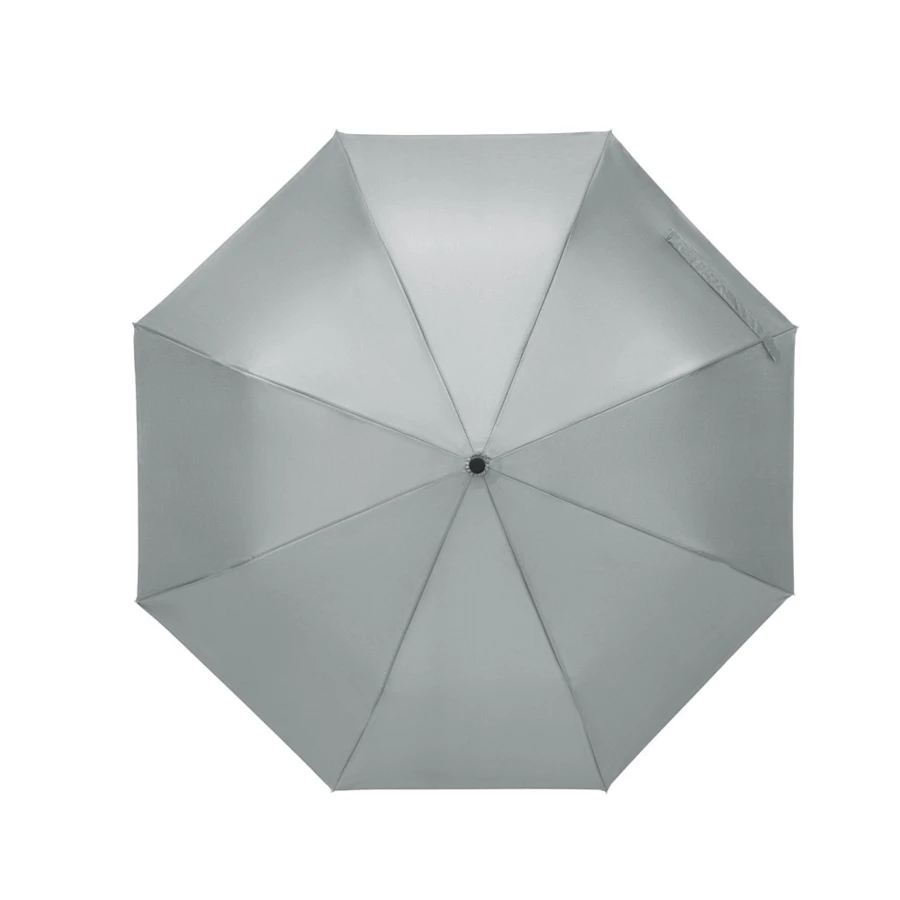 Recycled polyester (100% rPET) 190T pongee umbrella, with fibreglass ribs and PP handle. Foldable umbrella in 3 sections with automatic opening and windproof. Supplied in bag. Umbrella: ø990 x 290 mm | Bag: ø55 x 240 mm