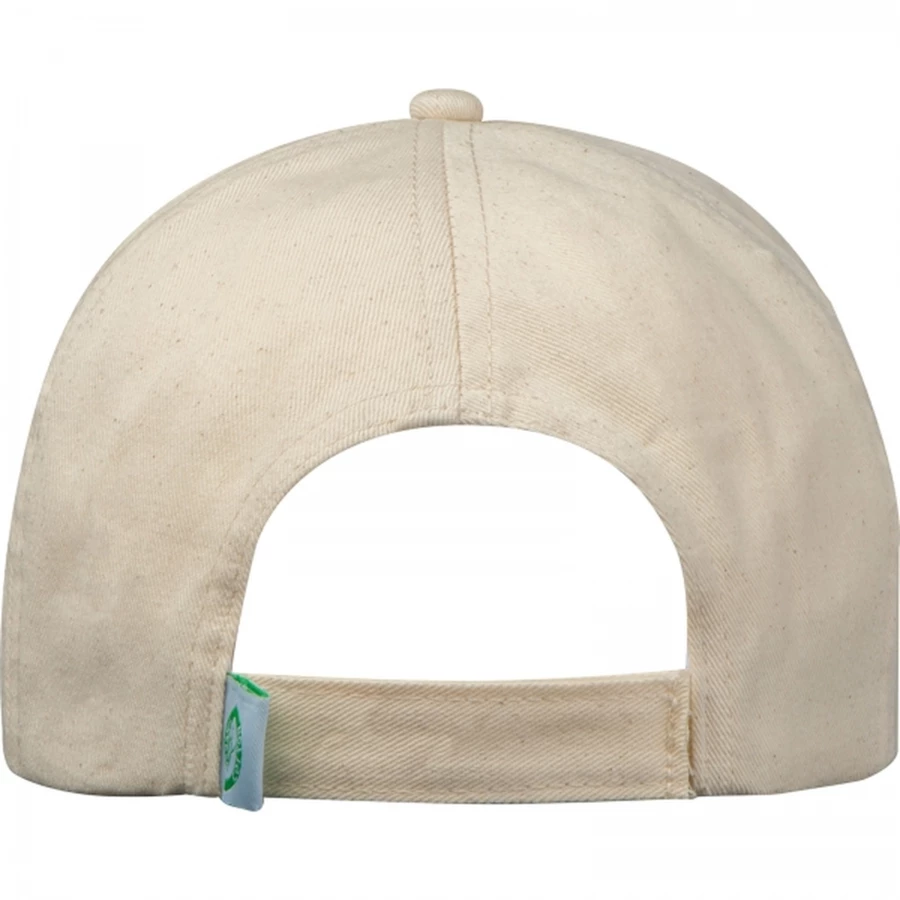 Ecofriendly organic cotton baseball cap with continuously adjustable velcro closure.