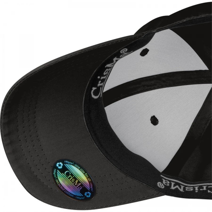 6 panel sandwich CrisMa baseball cap made from recycled 190g/m² cotton and suitable for almost all sizes thanks to the elasticated fastening.
