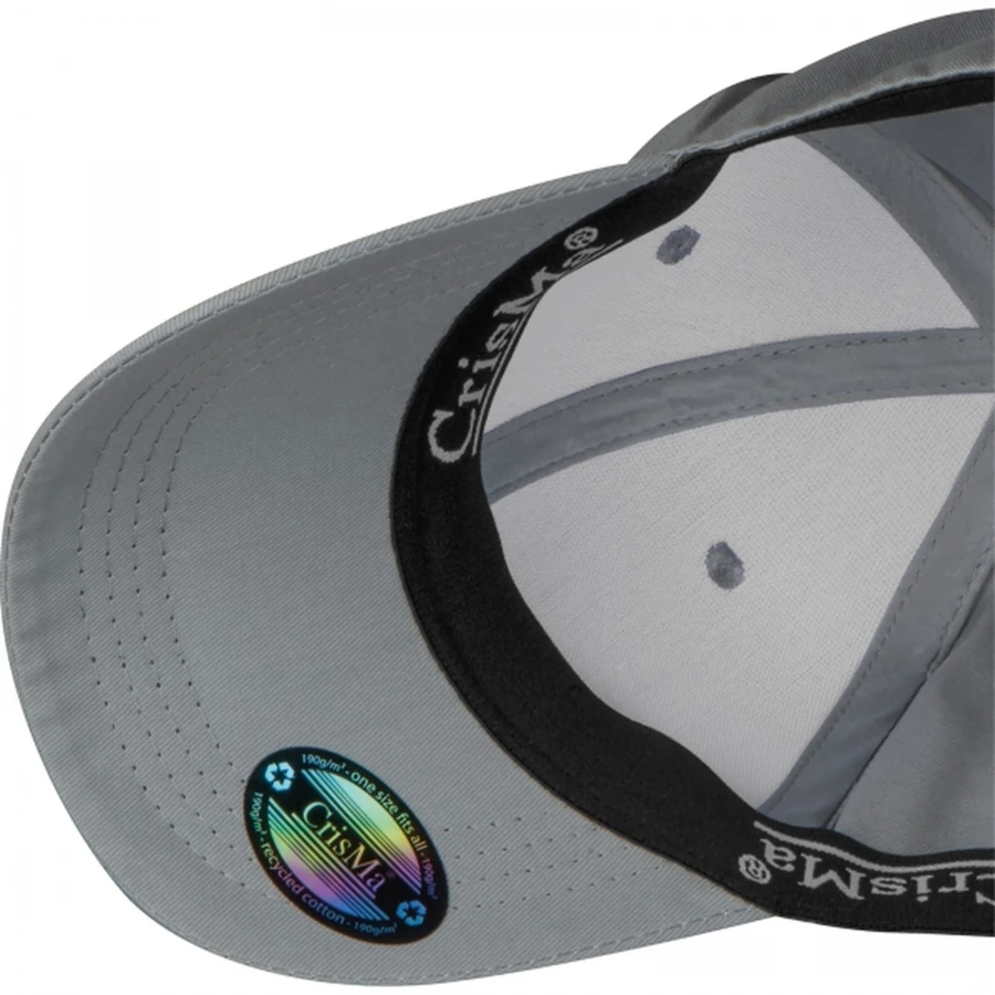 6 panel sandwich CrisMa baseball cap made from recycled 190g/m² cotton and suitable for almost all sizes thanks to the elasticated fastening.