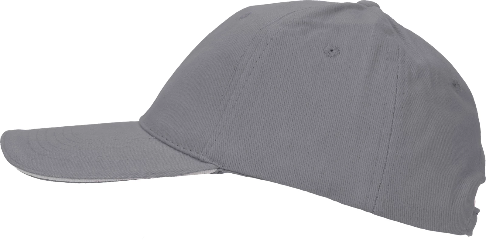 6-panel sandwich baseball cap made of heavy-brushed cotton. Available in various colours. With a matt silver metal snap closure. AZO-FREE.