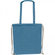 Cotton tote bag made of recycled cotton, Oeko-Tex STANDARD 100 certified, grammage 140g/m². The bag has long handles for carrying on the shoulder and strings for closing and carrying on the back.
