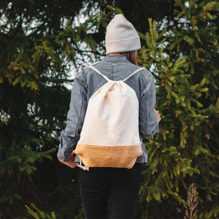 Cotton and jute gymbag with drawstring. Your advertisement will be printed on one side.