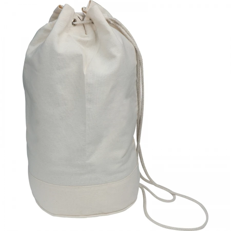 Natural, eco-friendly cotton duffel bag with drawstrings, which also work as shoulder strap. We will print your logo on one side.