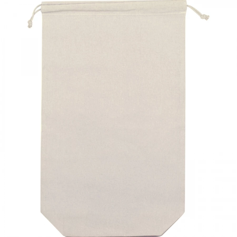 Bread bag made of environmentally friendly cotton with drawstring for closing. Your advertisement will be printed on one side.