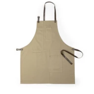 Pro apron in high quality, in resistant cotton canvas material of 340g/m2. Fitting under the knee, with neck and waist straps in resistant PU leather, with buckle adjustments and reinforced with metal rivets. Including many pockets for several utensils, with reinforced stitching.