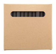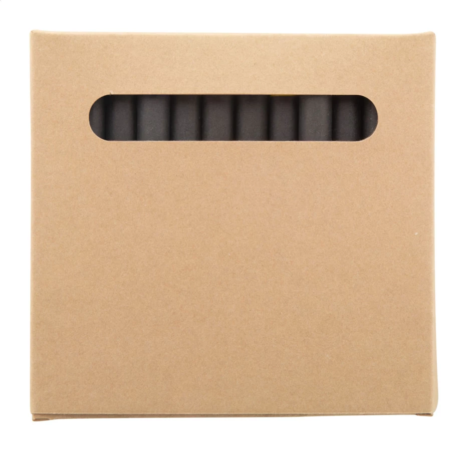 Black paper covered, coloured crayons (12 pcs) in full colour printed kraft paper box. Price includes digital printing. MOQ: 100 pcs.