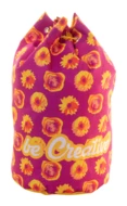 Custom made, drawstring sailor bag in 600D RPET polyester, with coloured strings. With all over sublimation printed graphics and distinctive RPET label. MOQ: 25 pcs.