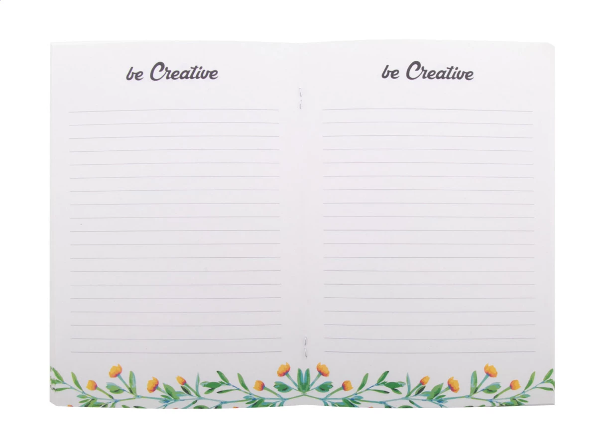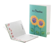 Custom made, recycled paper covered notebook with 32 recycled paper sheets, A5 size. Price includes full colour printed outside cover and an identical full colour print on all inside pages. MOQ: 100 pcs.