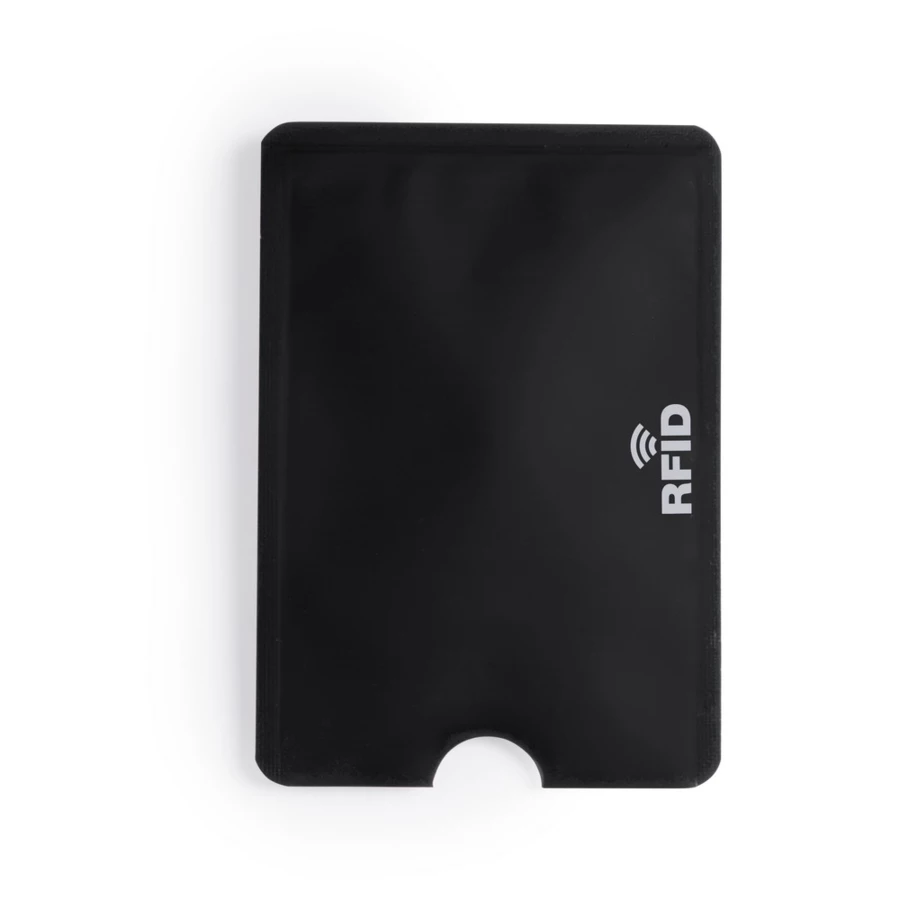 Card holder with RFID (Radio Frequency Identification) security technology that keeps card data safe. Resistant, smooth aluminum body in lightweight colors, with notch for easy access to the card.