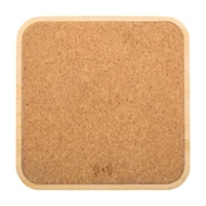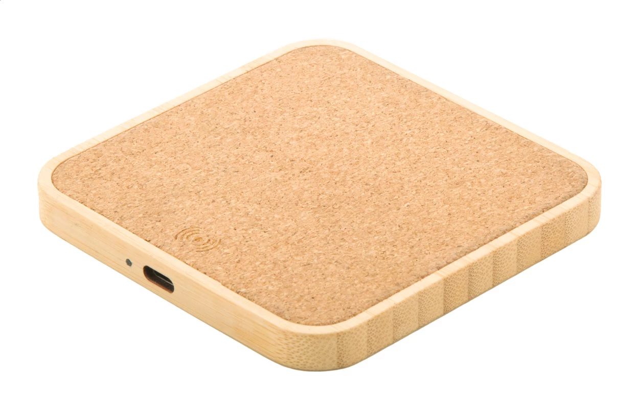 Bamboo and natural cork wireless fast charger (15W). Including USB charger cable.