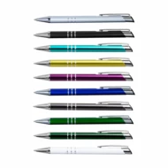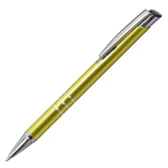 Długopis aluminiowy. Wyposażony w niebieski wkład.
