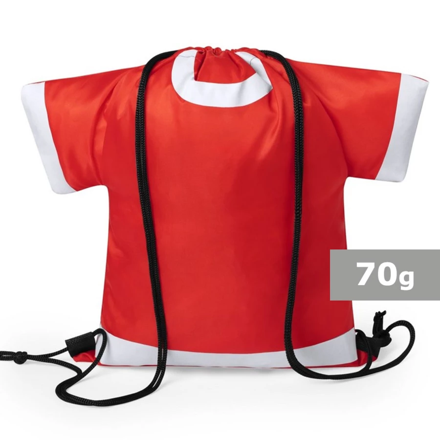 Bold, fun design drawstring backpack for kids in the shape of a Tee. In soft polyester 210T, with self-adjusting strings in black color and reinforced corners. Available in a wide range of intense colors.